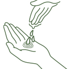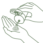 ![]() ①適量(ティースプーン1 杯程度)を、軽くくぼませた手のひらに取ります。 |
