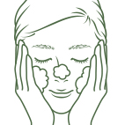 ![]() ④お顔全体を包むようにやさしく洗い、水またはぬるま湯でていねいに洗い流してください。 |